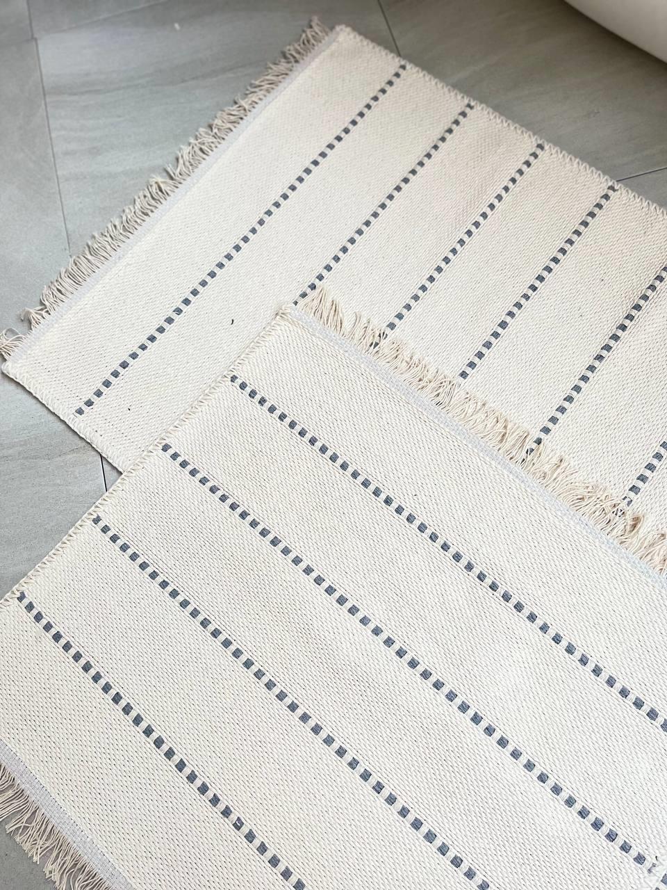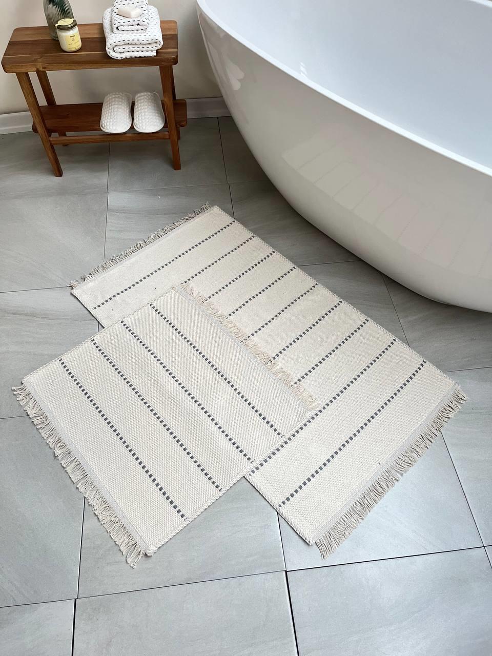 Pamuklu banyo paspas seti klasik tasarım, çeyizlik veya günlük kullanıma uygundur.
