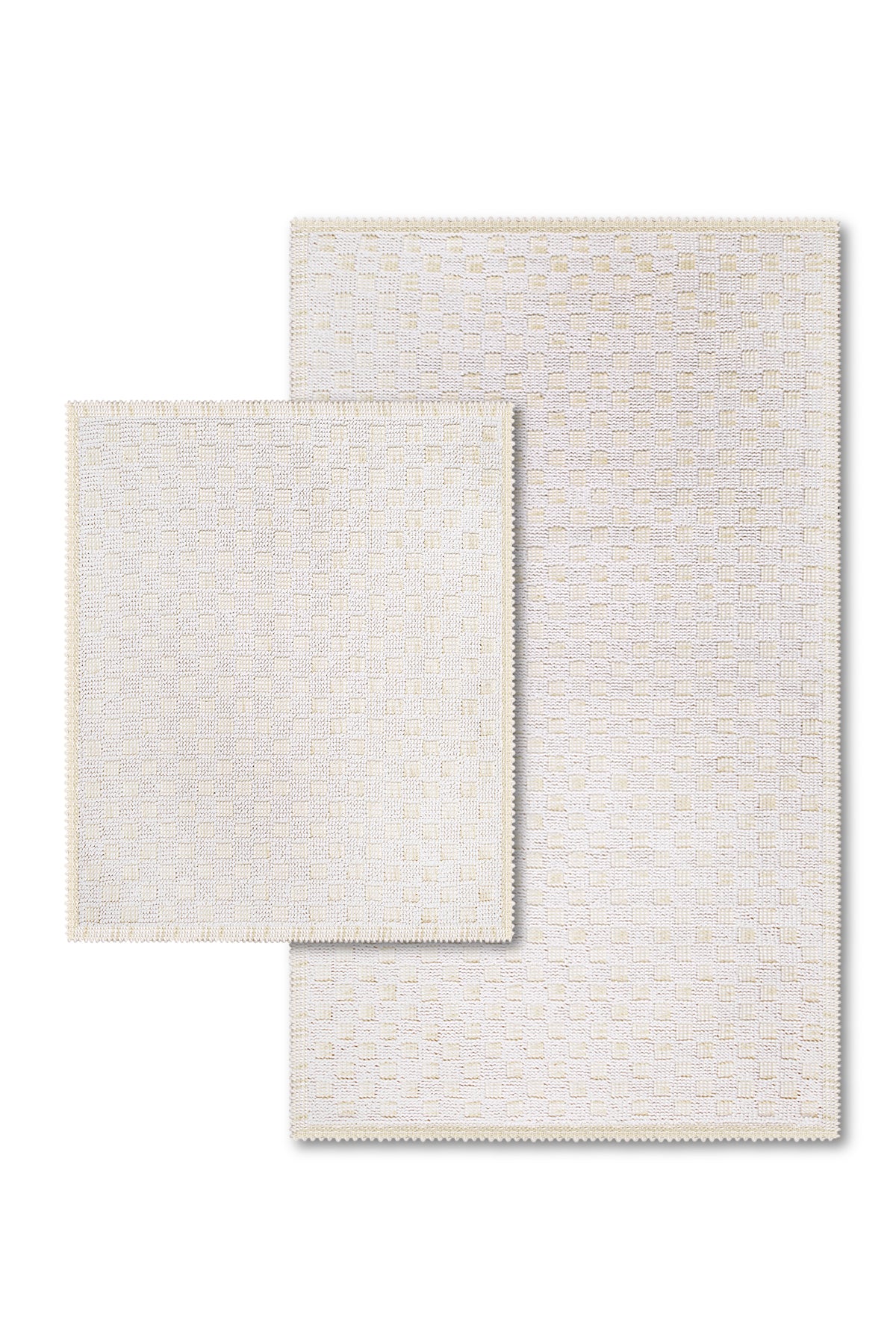 Checkers Doğal Pamuklu 2'li Banyo Paspas Seti 60x100+50x60 cm Beyaz
