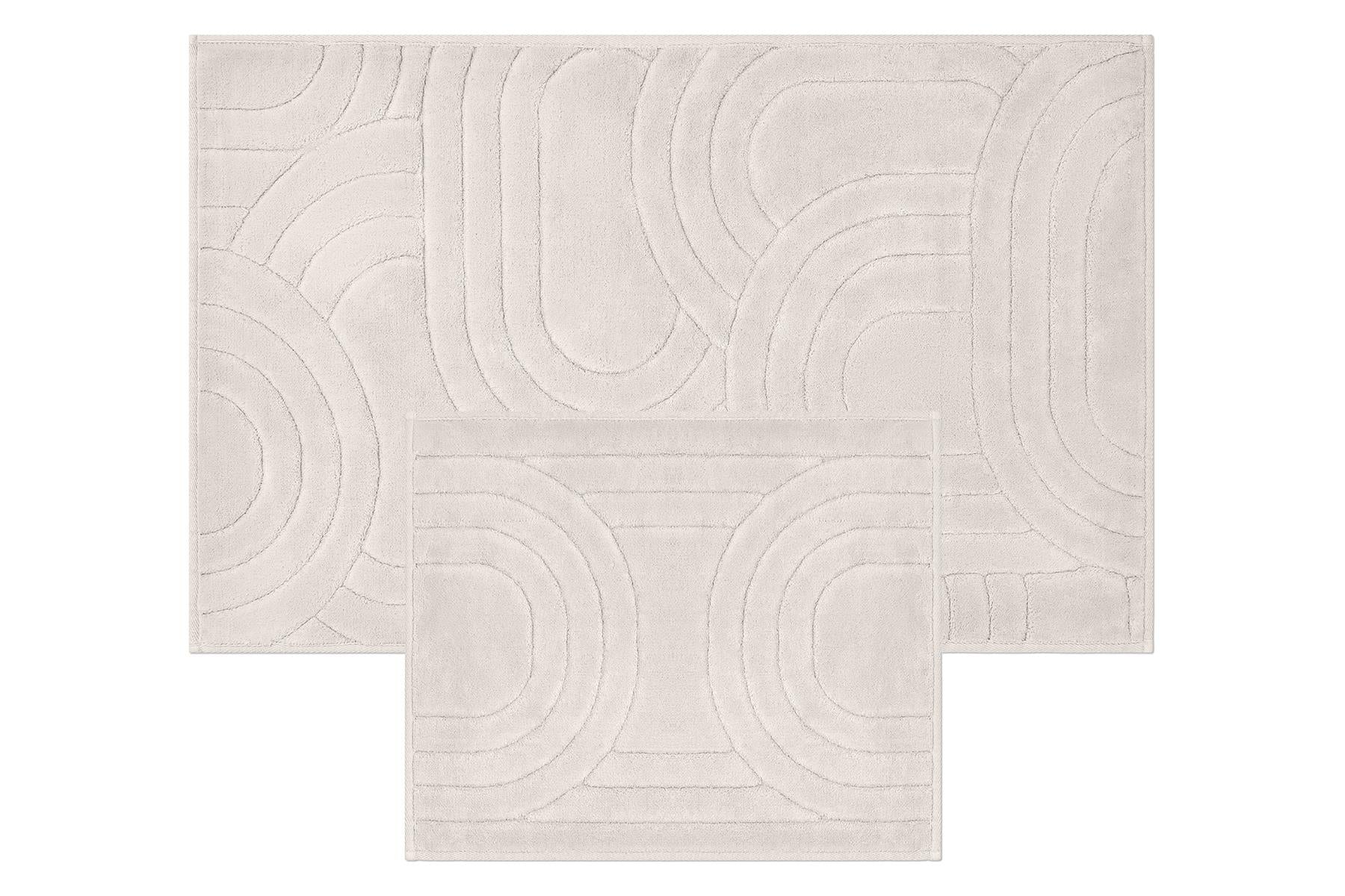 Diamond Circle Doğal Pamuklu 2'li Banyo Paspası 60x100+50x60 Cm - Ekru