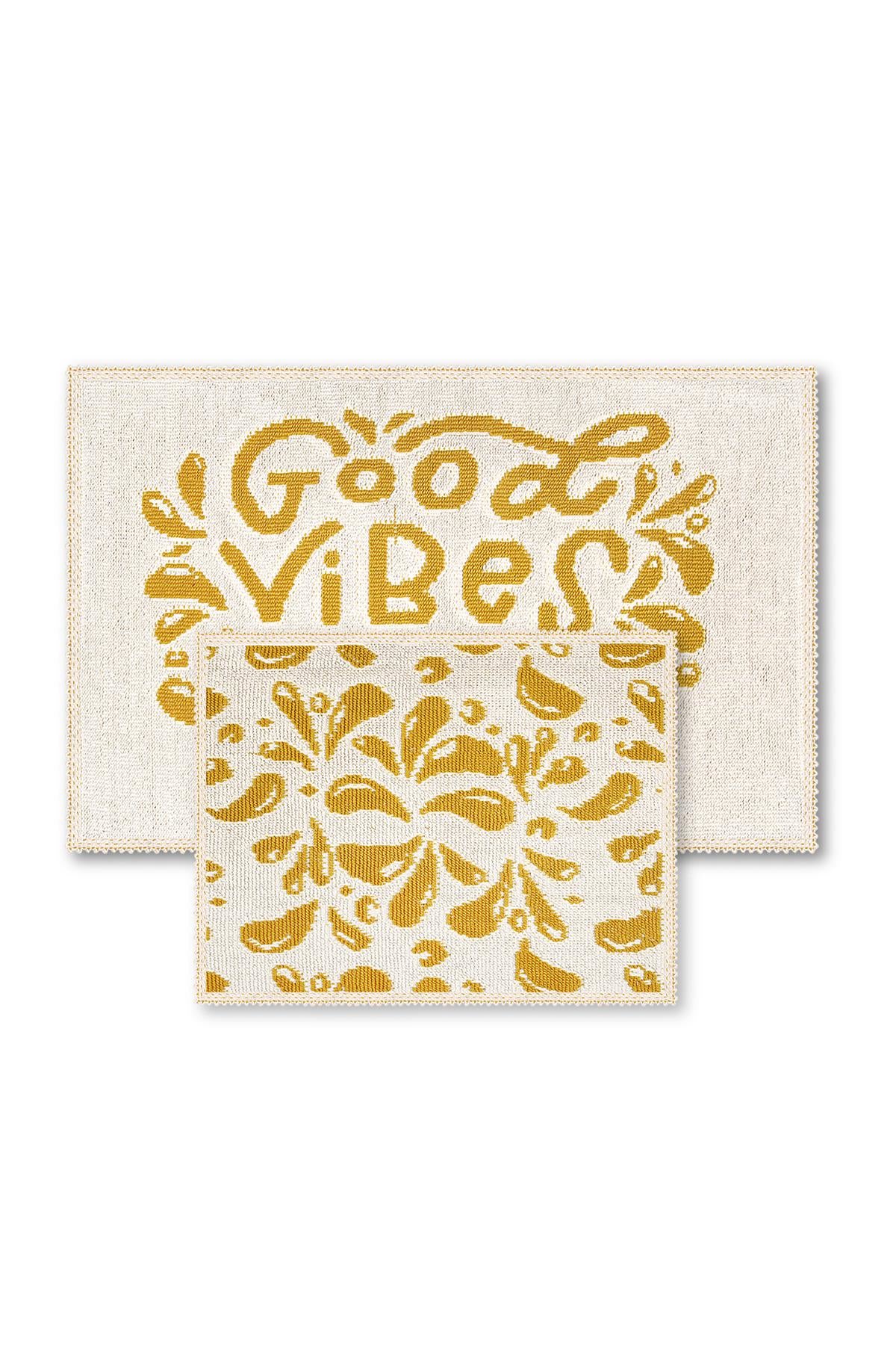 Good Vibes Doğal Pamuklu 2'li Banyo Paspas Seti 60x100+50x60 Cm - Hardal