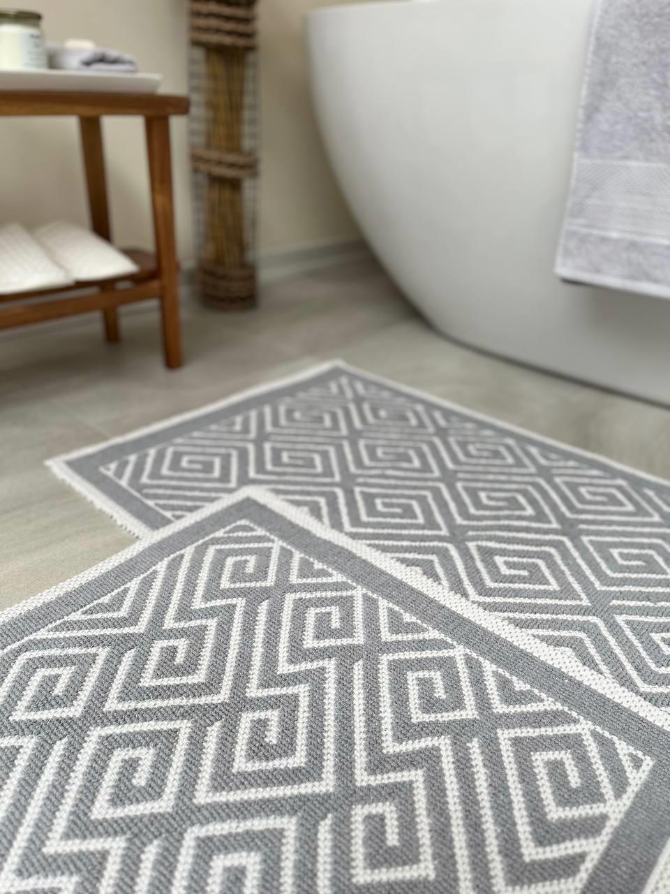 Labirent Doğal Pamuklu 2'li Banyo Paspas Seti 60x100+50x60 Cm - Gri