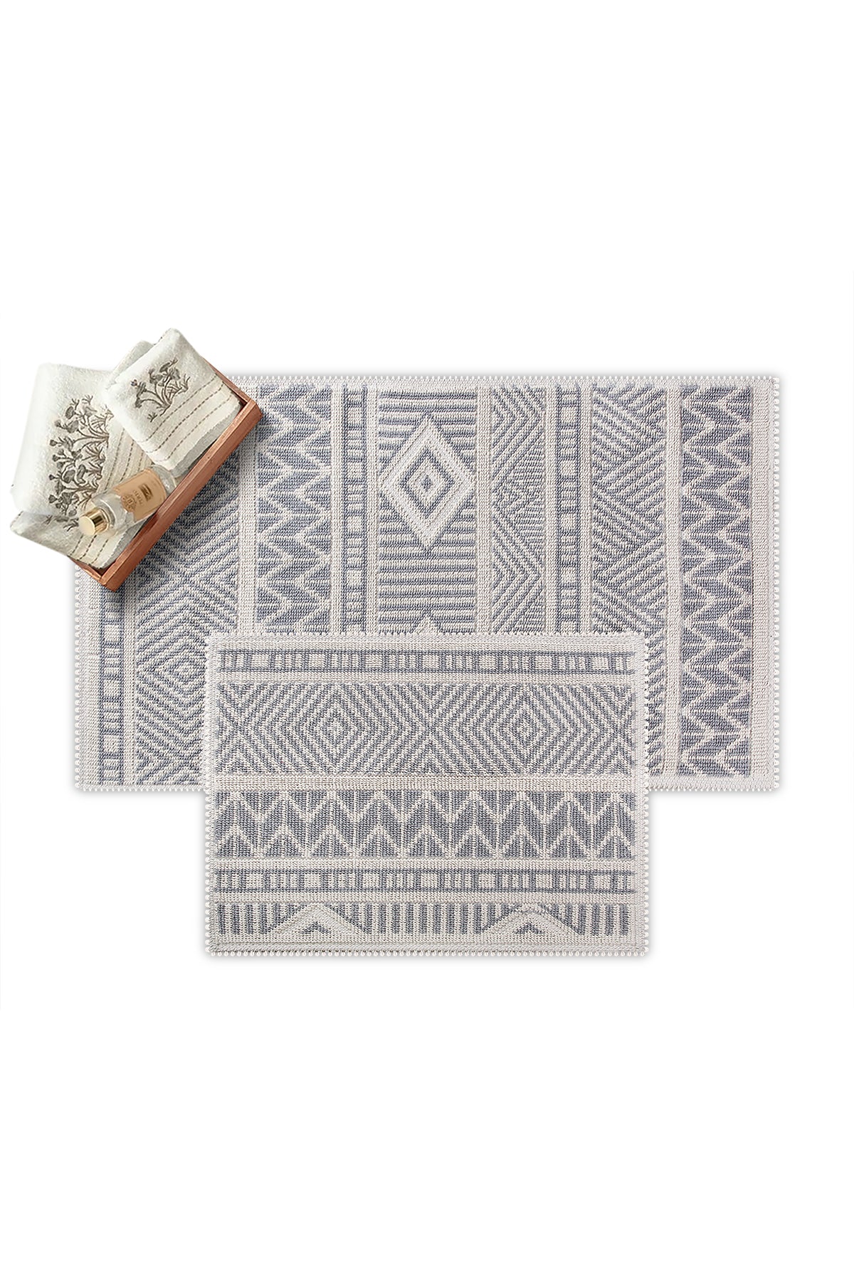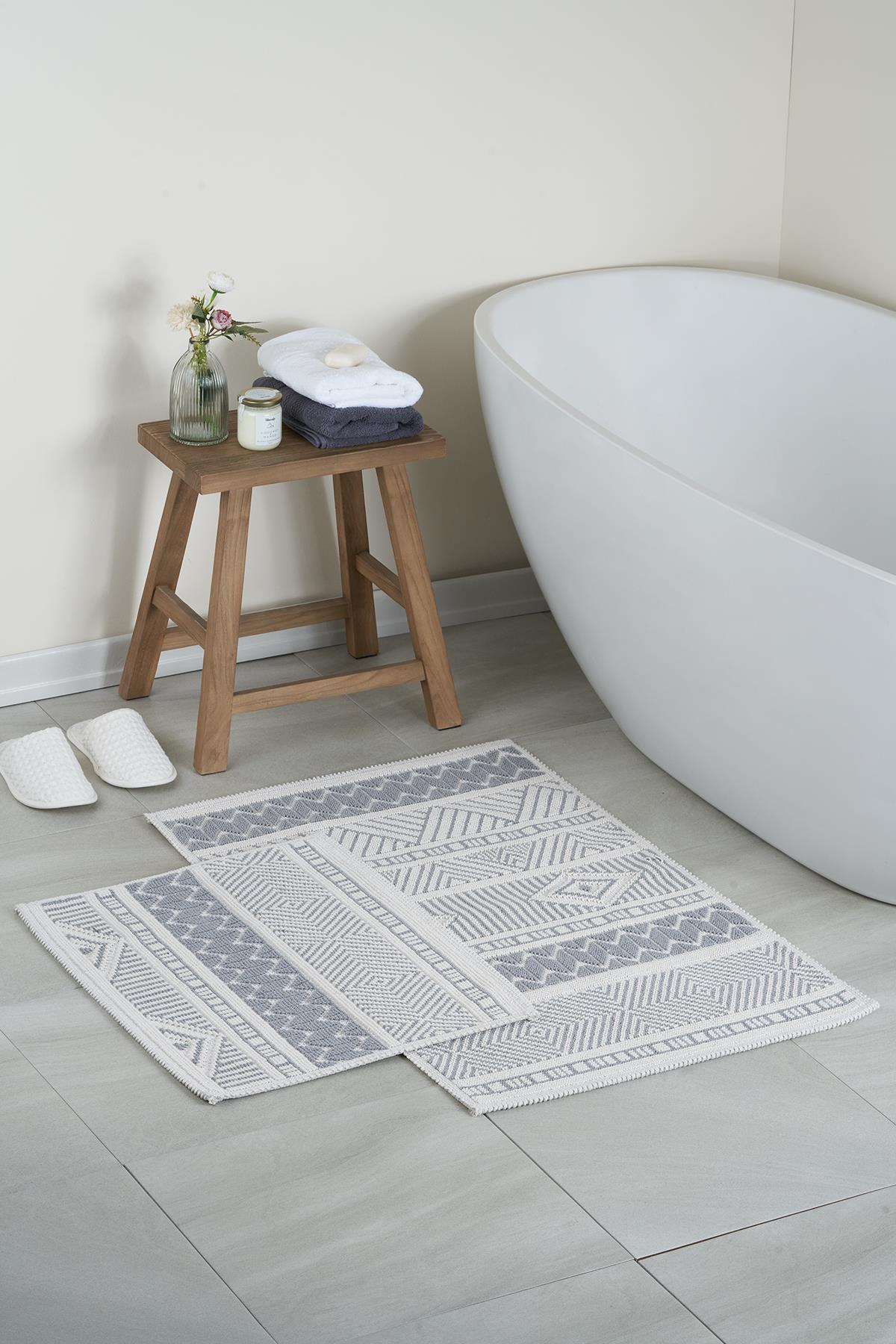 Marina Doğal Pamuklu 2'li Banyo Paspas Seti 60x100+50x60 Cm - Gri