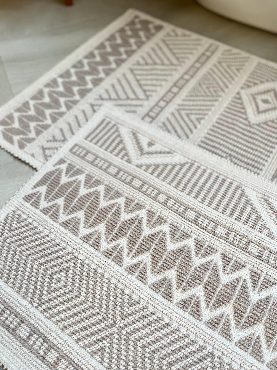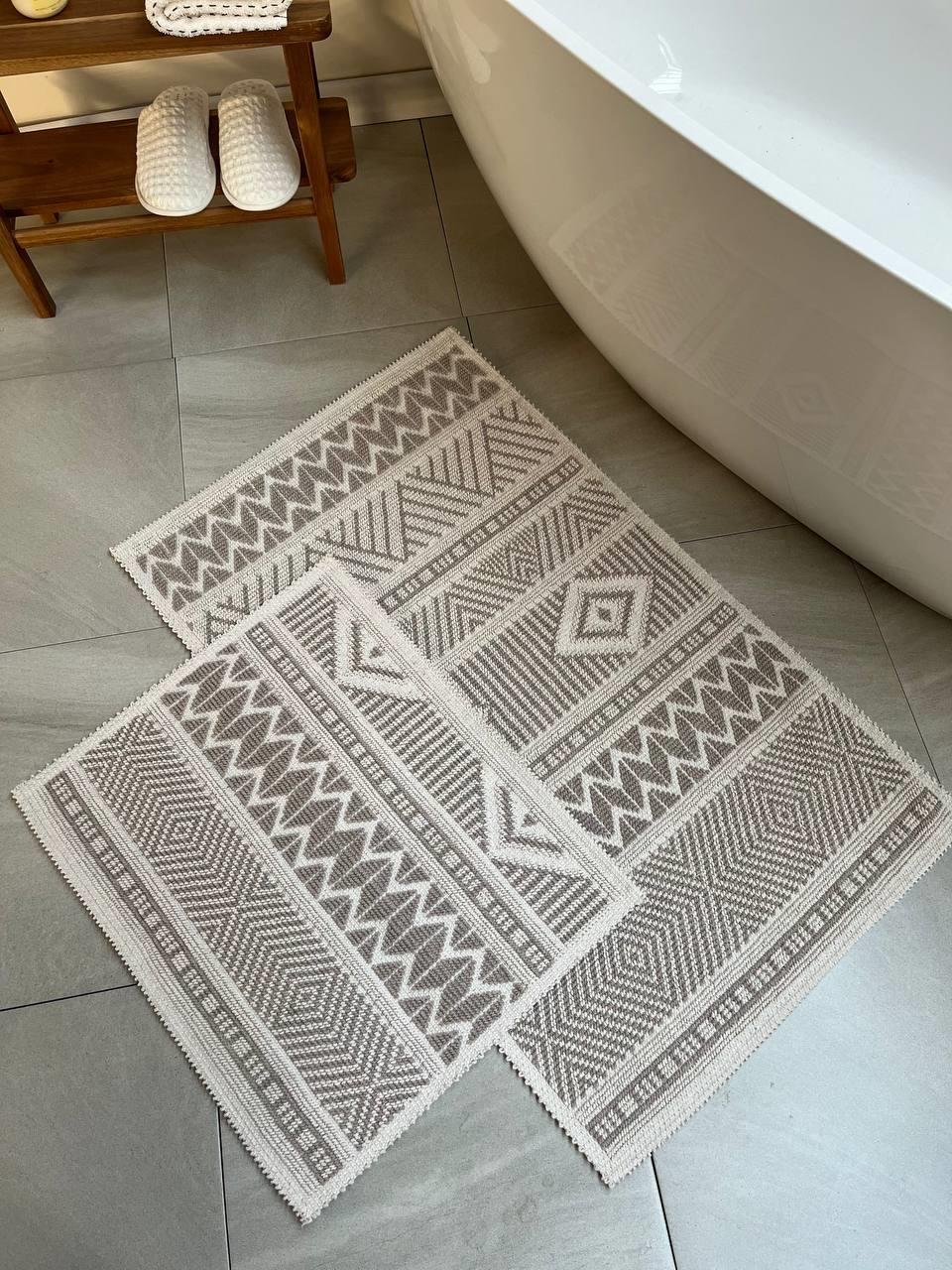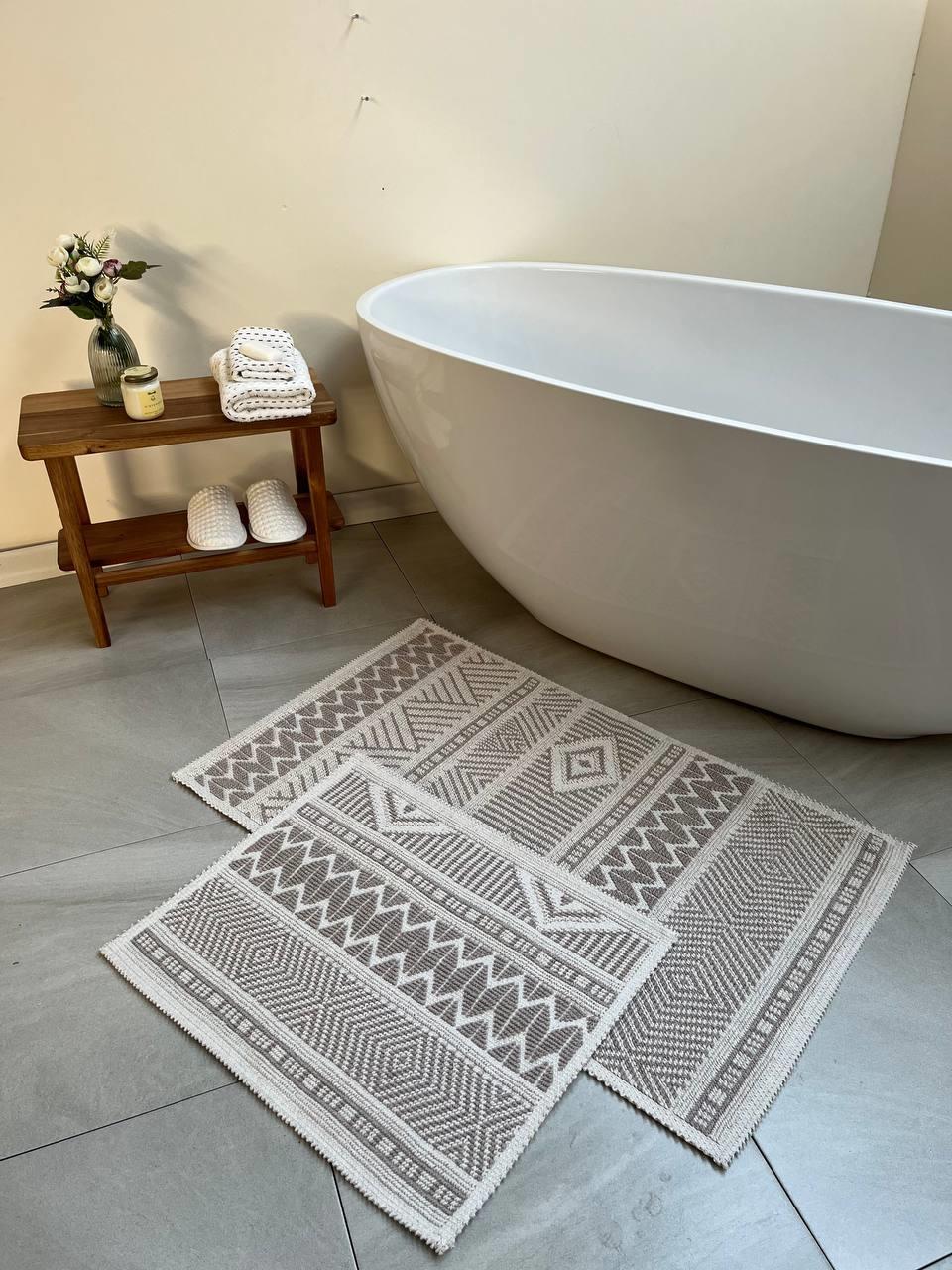 Marina Doğal Pamuklu 2'li Banyo Paspas Seti 60x100+50x60 Cm - Taş