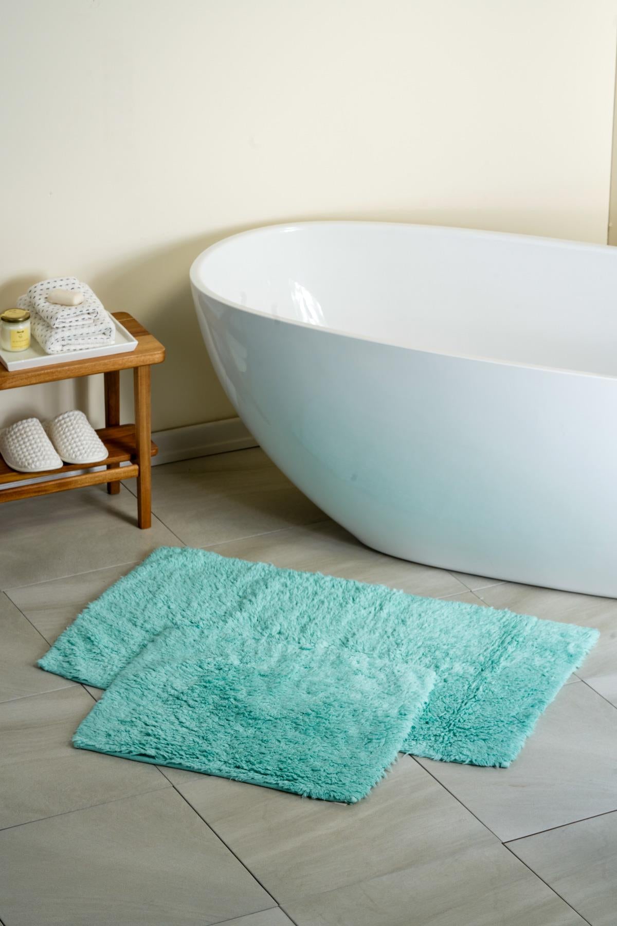 Canggu Doğal Pamuklu 2'li Banyo Paspas Seti 60X100+50X60 Cm - Turkuaz