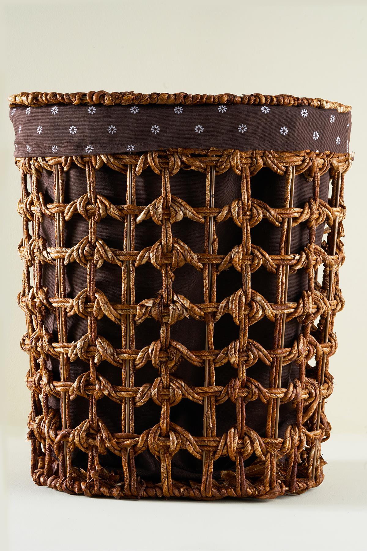 Daisy Çiçekli Hasır Çamaşır Sepeti 53X48X36 Cm - Kahverengi